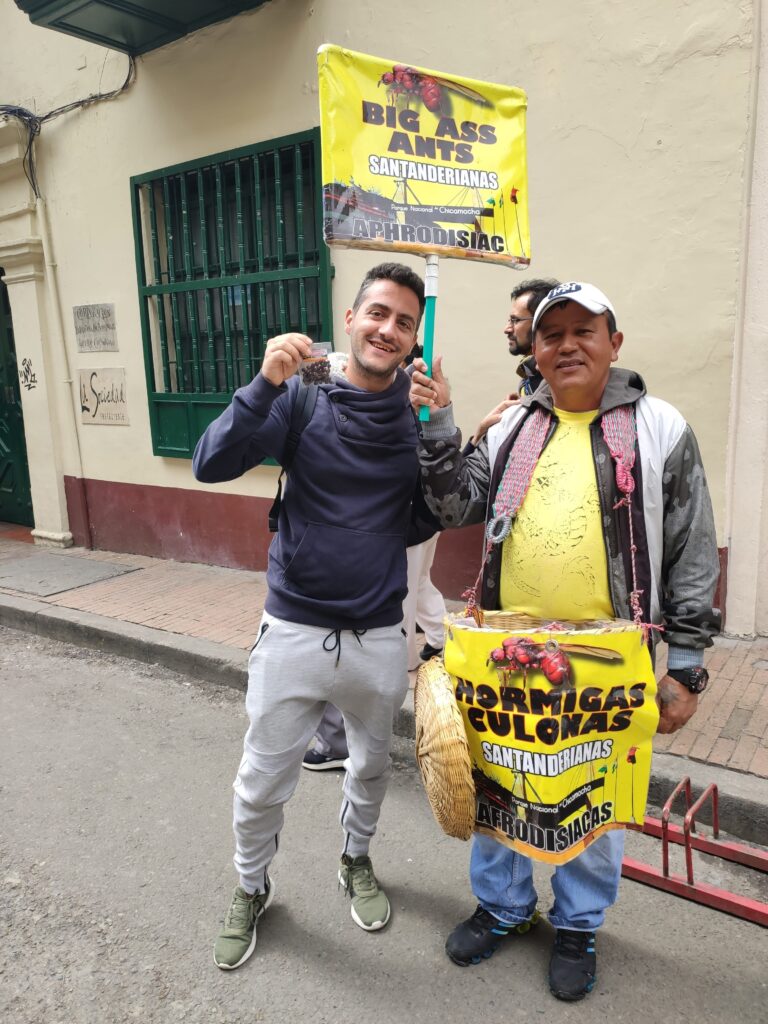 Al centro storico abbiamo comprato un pacchetto di formiche culone (Hormigas Culonas), una specialità tradizionale, spesso tostata e mangiata come fossero arachidi.